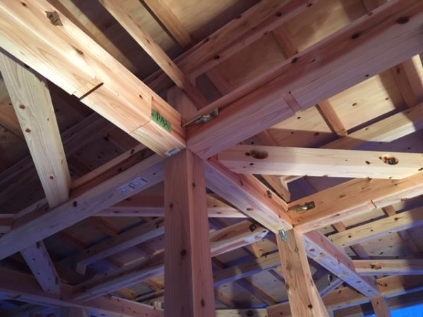 you工房建築の建売住宅、富合町の現場では着々と工事が進んでおります。先日「金物検査」を行いました。金物検査とは、建物が上棟後内部の躯体の接合部が正しく施工されているかを厳しくチェックする検査です。 外部の検査機関の方が来られて図面通りの金物が取付けられているかどうか、取り付け方そのものが正しい手順で行われているかなどをチェックしていただきます。