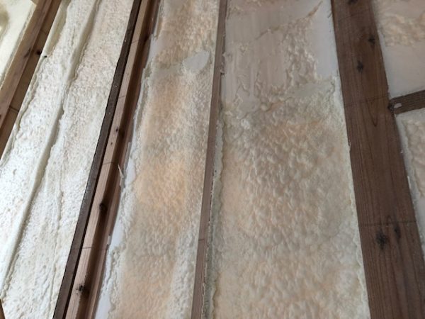 発砲ウレタンの吹き付け作業です。断熱材になります。言葉の通り熱を遮断するためのもので、暑い夏や寒い冬でも快適に過ごせるのです。ウレタンは耐水性、防音材にもなり、シックハウスの心配がありません。またノンホルムアルビデドで、揮発性の化学物質も使用されていません。安心して暮らせますね♪