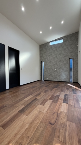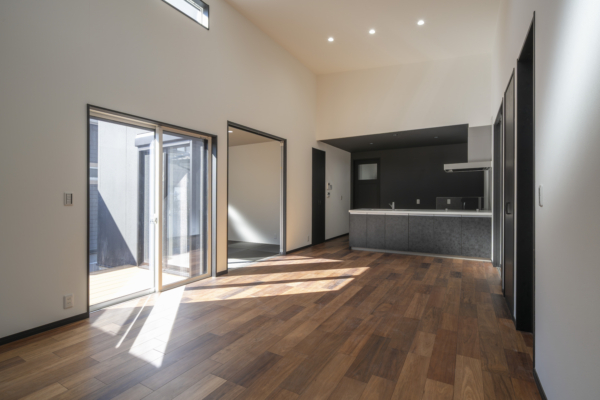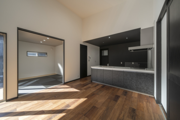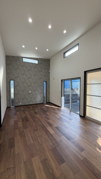 吹抜けのある20帖のLDKは開放感たっぷり♪ウッドデッキも付いてご家族でゆっくりと過ごすことができます